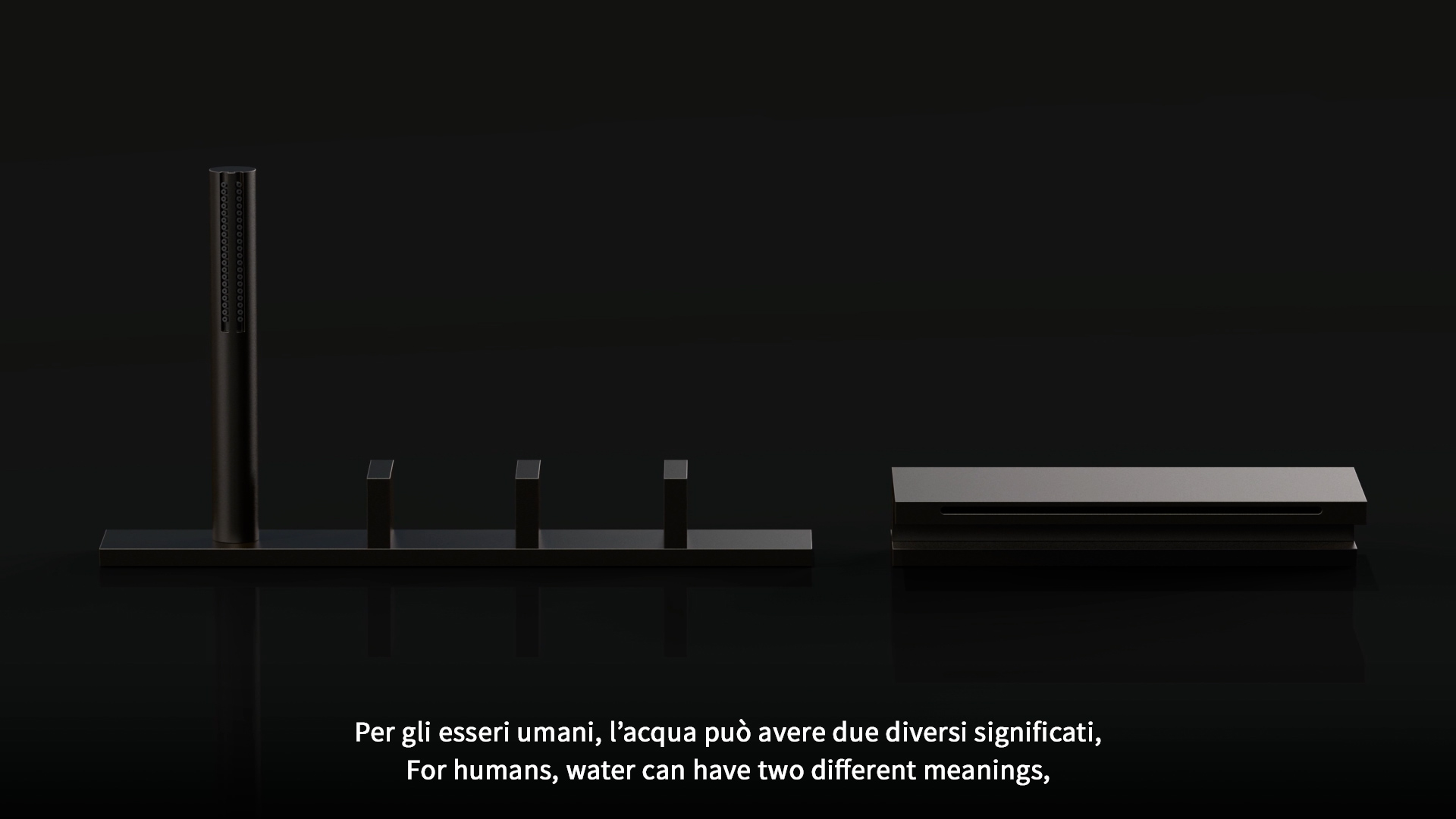 Sometimes you simply draw out the shape of a design, but more important is the thought that comes before. Take for instance the bamboo in this work representing the chasm. These bamboo leaves shot in 2013 became the formative element of the Aboutwater brand of Fantini and Boffi. How can you make sense of this time lag? In the end, it’s all ‘me.’